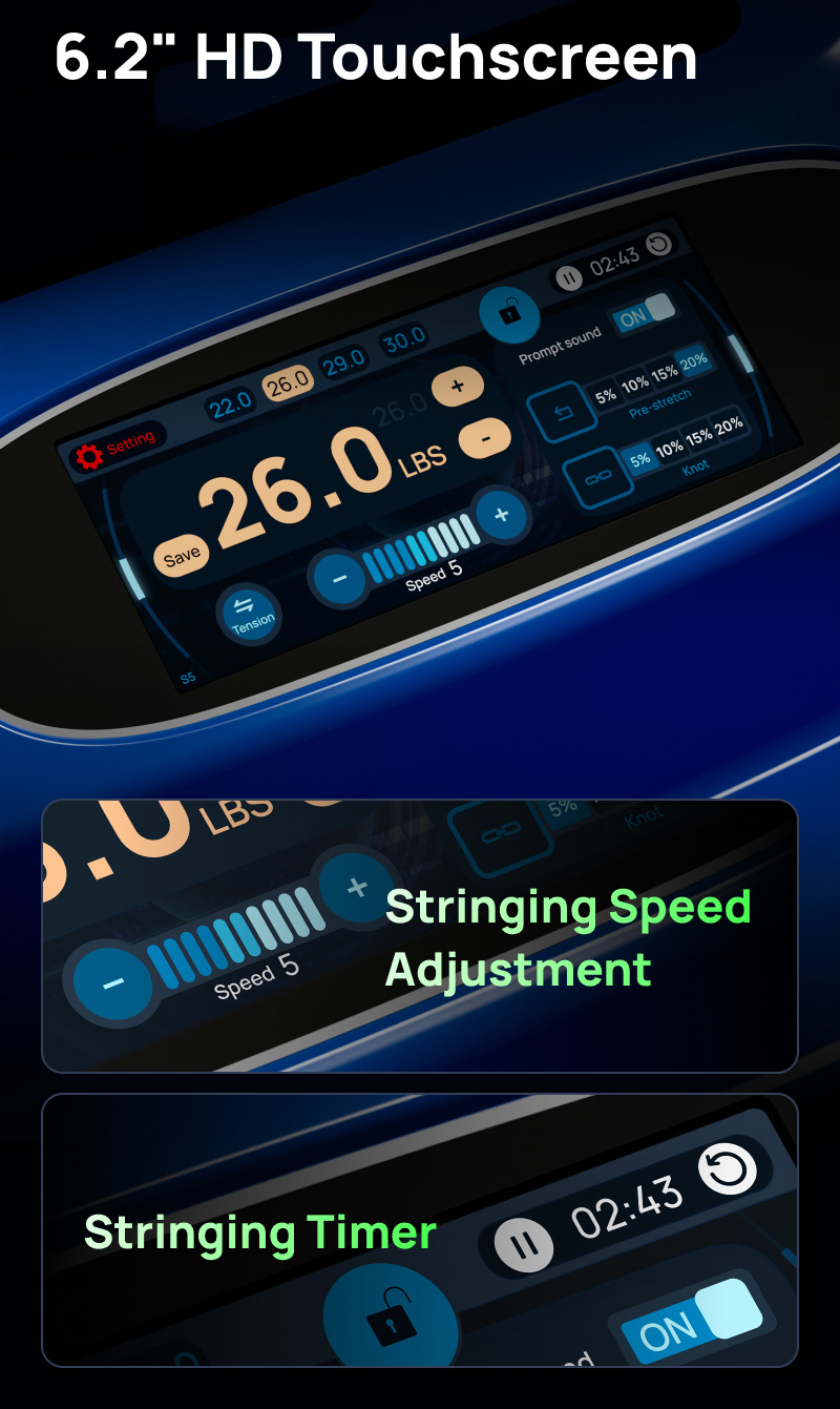 4. Constant Force Stringing, Precise Tension.;