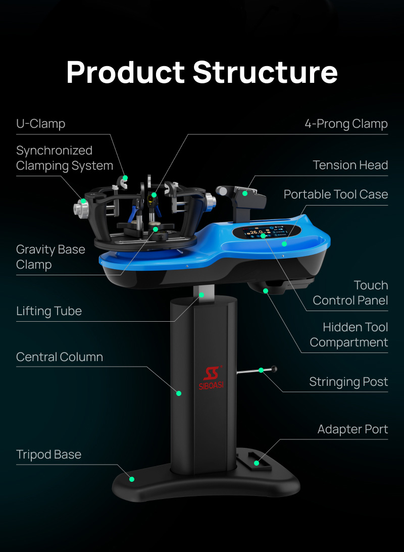 This rich history directly influences the engineering of their modern stringing machines, such as the S5 and S7 series. The "intelligence" developed over years of R&D is now embedded in their computer-controlled constant tension systems. These machines utilize the precise calibration data SIBOASI has aggregated over nearly two decades to ensure pulling force stability within ±0.1 lbs. Furthermore, their patented synchronous six-point mounting system—a solution to frame deformation—reflects the deep empirical knowledge they have gained from working with professional federations who demand absolute equipment safety.