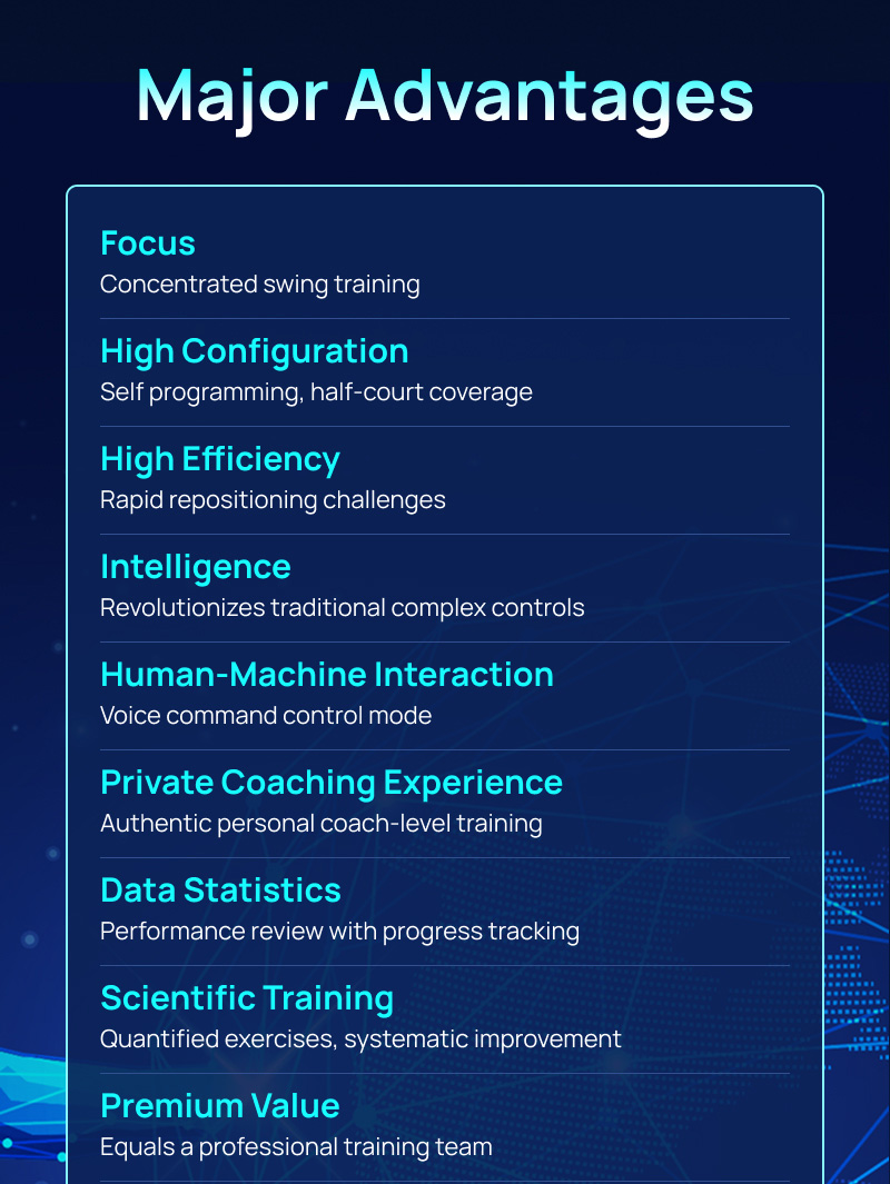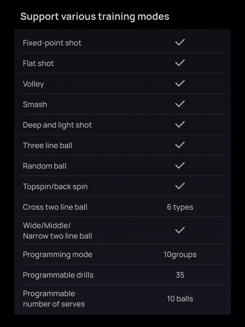 ● Key Feature: Voice Control and AI Intelligence. You can verbally command the machine to "increase speed" or "switch to topspin" without stopping your swing.